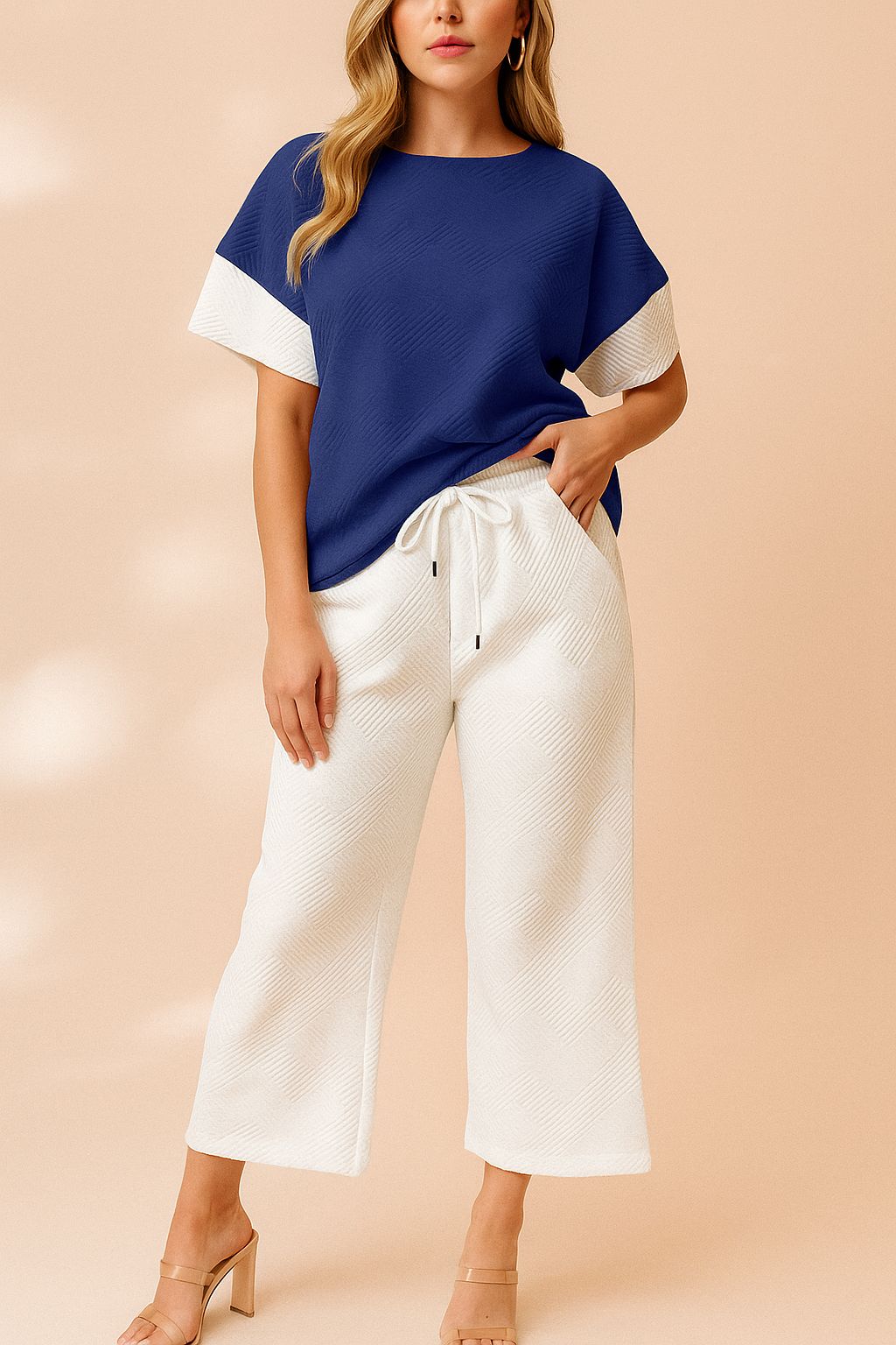 Two-Tone Textured Top and Wide-Leg Pants Set