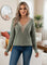 A soft, ribbed knit sweater with a statement openwork V-neck and textured long sleeves. Easy, relaxed fit that skims the body and keeps its shape through the day.