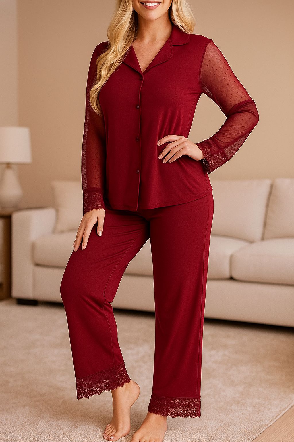 Lace Pajama Set – Long Sleeve Sleepwear for Women